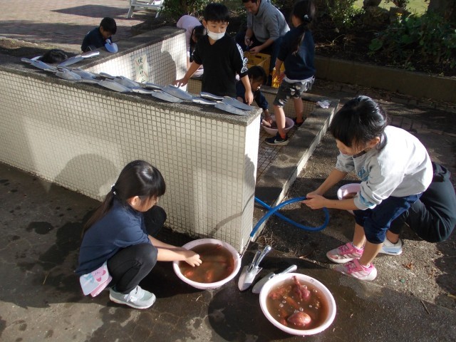 みんなで「腰がいたい!」と言いながら、サツマイモを掘ったり、洗ったりと楽しく作業しました。
