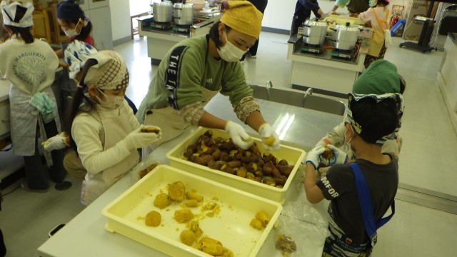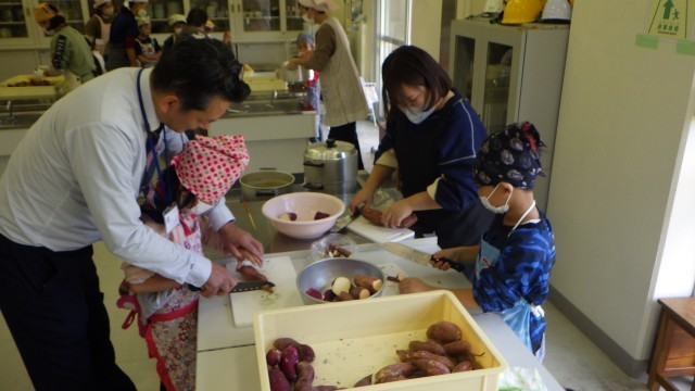 昨日、三宅高等学校で掘ったサツマイモで、つまみづくりを行いました。