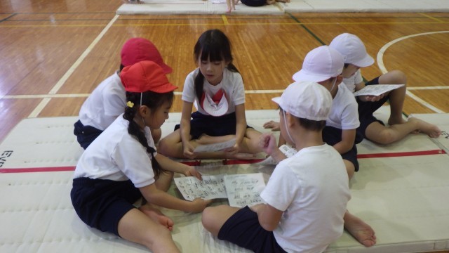 今日は、各チームで分かれて話し合い、2種類の道具を使ってマットランド作りを行いました。