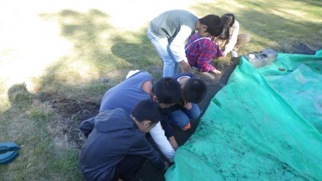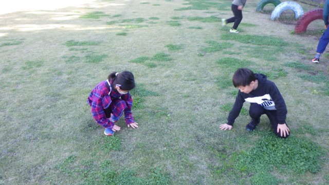 2時間目は、日なたと日かげの地面の様子を観察しました。
