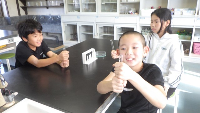 4年生・理科 「試験管をあたためると石けん膜はどうなるのかな?」