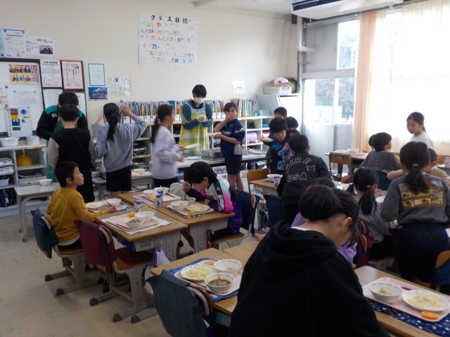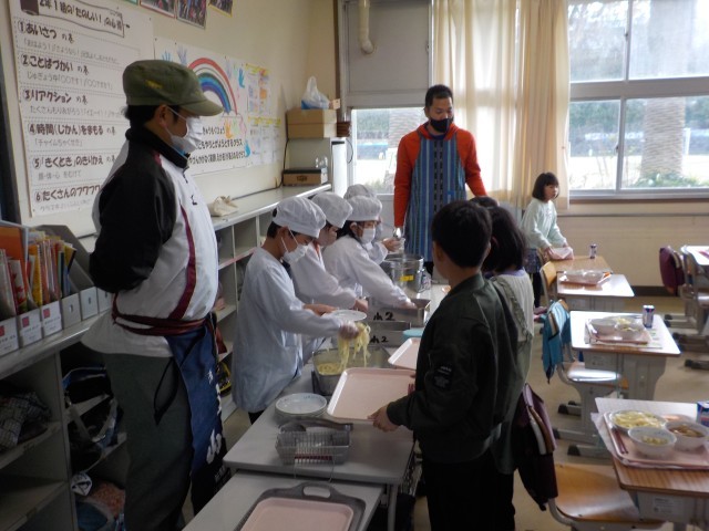今日のちゃんこうどんは、だしのうま味がしっかりと感じられるメニューでした。野菜や鶏団子もたっぷり入っており、栄養バランスの良い給食となりました。本日使用した三宅島産の食材は、長ネギ・大根・生姜・白菜でした。