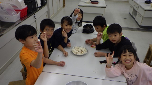 自分たちで育てたポップコーンは、とてもおいしく、みんなで楽しく味わうことができました。また、後片付けも声を掛け合いながらそれぞれが手分けして行うことができました。