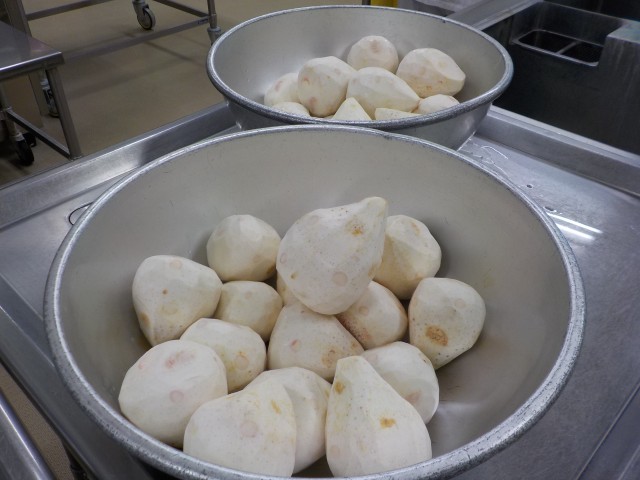 本日使用した三宅島産の食材は、里芋(赤芽芋)・大根・長ネギでした。