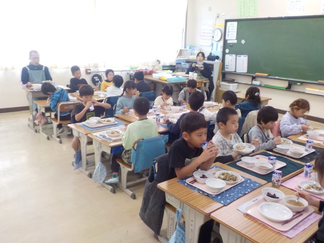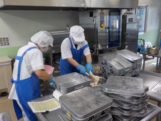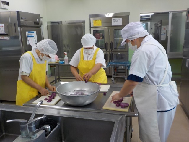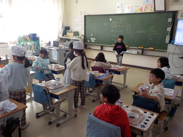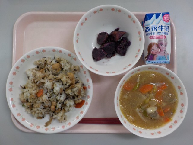 今日の給食は、噛み応えのある食材をたくさん取り入れた「かみかみ献立」でした。豆やひじき、根菜など、よく噛んで食べる必要がある食材を多く使用しました。よく噛むことは、消化を助けるだけでなく、脳の働きを活発にしたり、虫歯を予防したりと良い効果がたくさんあります。これからも、よく噛んで食事することを習慣付けていきましょぅ。今日の大学芋は、ホクホクとした食感と程よい甘さが好評でした。