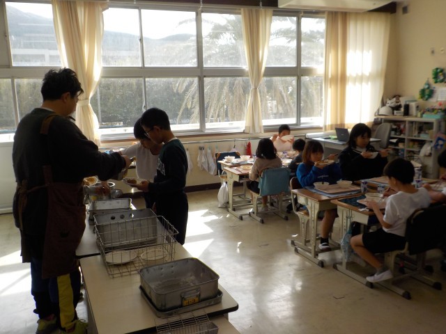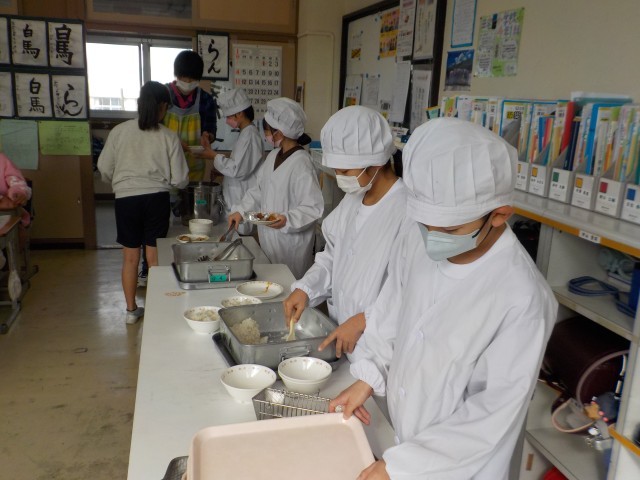 今日のお魚ハンバーグには、三宅島近海で取れたキメジを使用しました。今回もいきいきお魚センターの職員さんが、手作業で魚を捌き、すり身にして提供してくださいました。お魚ハンバーグは、お魚の美味しさがよく伝わってくるメニューで、ご飯とよく合う味付けとなっていました。美味しく調理してくださった調理員さん、ありがとうございました。先週と今週の2週間は、放送委員会が考えたクイズをお昼の放送で出題しています。各教室、盛り上がっている様子がよく伝わってきました。本日使用した三宅島産の食材は、キメジ・青梗菜でした。