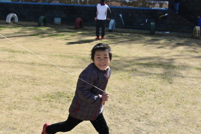 自分の好きなものを描き、凧揚げは、しっかりとあがり、凧作りも凧揚げも大成功でした。