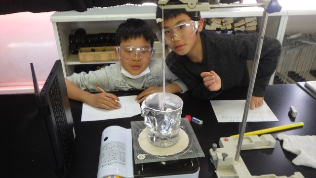 今日は、水を温める実験を行いました。