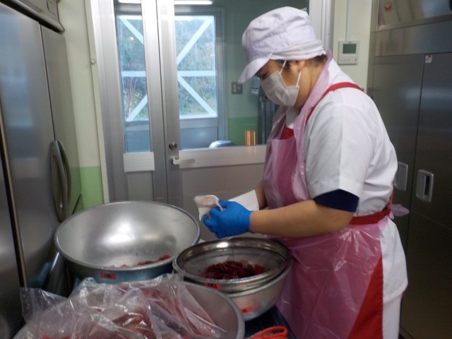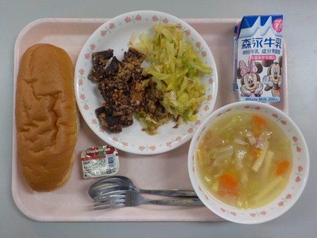 今日の給食は全体的に噛み応えがあり、「顎が鍛えられた」という声がたくさん聞こえてきました。隠れかみかみ献立でした。