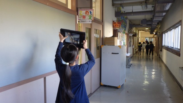 校舎内を歩いて「こんなところにも数字があるよ」と数字を見付けて写真を撮っていました。