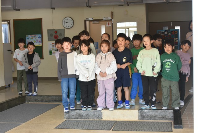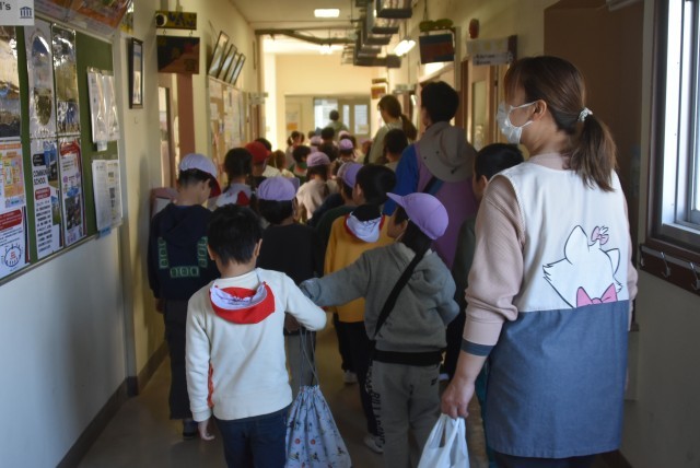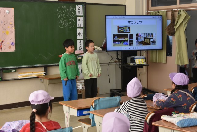 新1年生入学体験として、みやけ保育園ぞう組の皆さんが三宅小学校を訪れました。