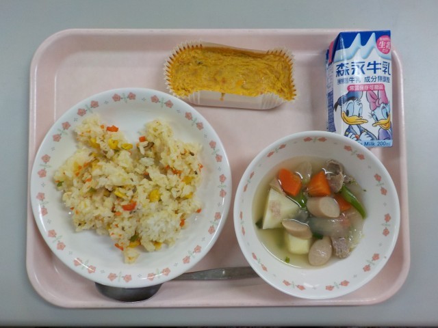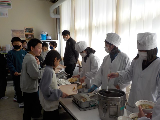 1日目は、「隠し味は♡愛♡洋風献立」でした。この献立には、「食べる人がお腹いっぱいになれるように」という思いが込められており、その思いの通り、満足感のある献立となっていました。下級生からは、「栄養バランスが整ったメニューを考えられる6年生すごいな~」という声もあり、6年生が家庭科の授業で学んだ内容を存分に発揮できる良い機会となりました。