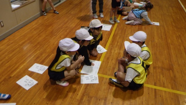攻守が入り混じりながら宝を取り合うゲームですが、子供たちはルールをしっかり守り、安全に気を付けながら楽しく活動していました。