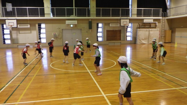 1・2年生の合同体育で、「たからとりおに」を行いました。