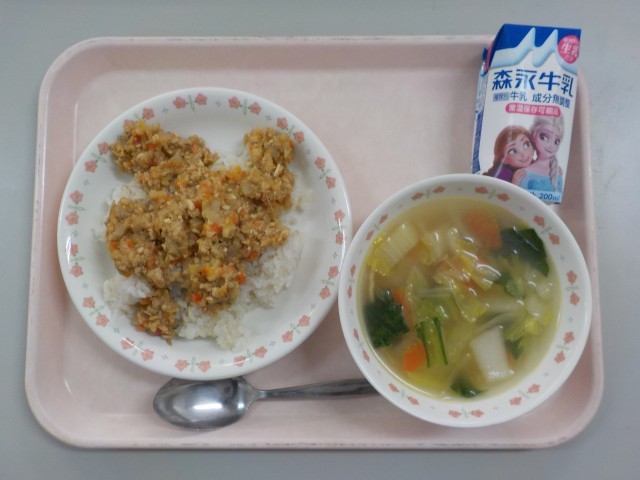 今日のメインである「根菜のタコライス風」は、名前の通り数多くの根菜を使用したメニューでした。チリパウダーの風味が食欲をそそり、ご飯が良く進みました。白菜とベーコンのスープは、白菜の甘みが際立つメニューで、優しい味わいが魅力的でした。