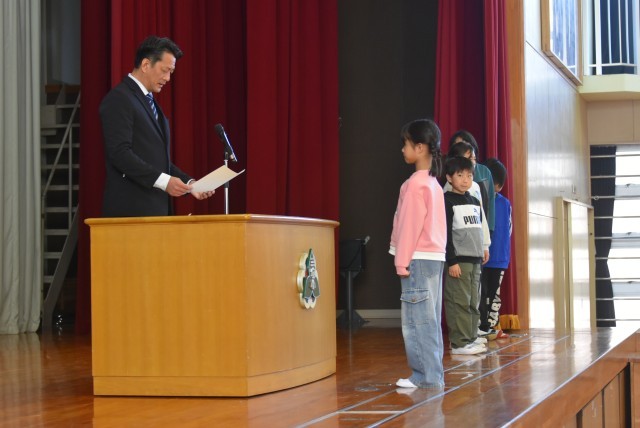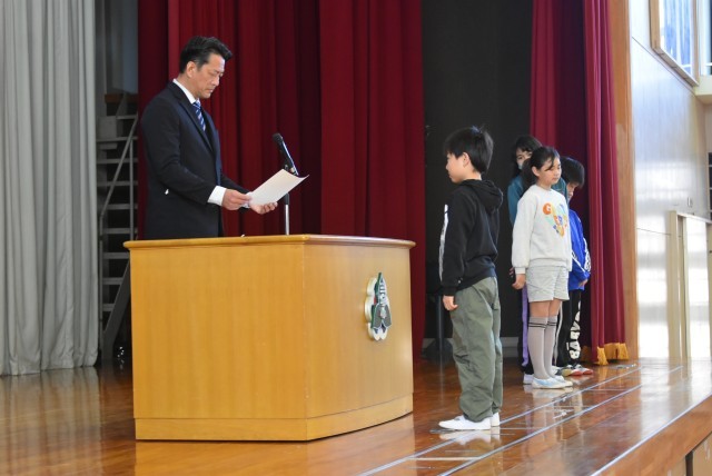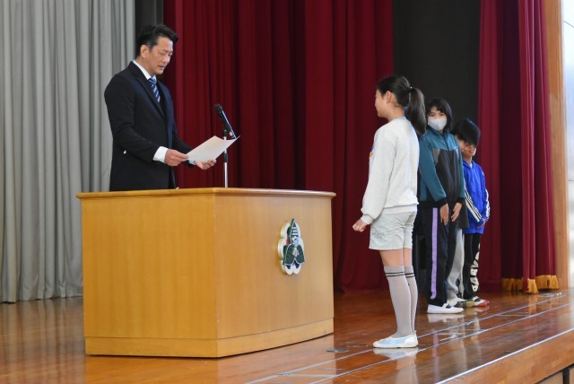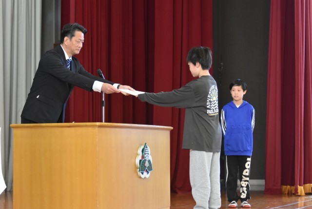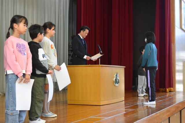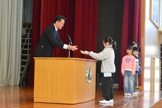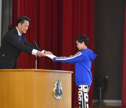 各学年、学級の代表者が校長先生から記録証を受け取りました。