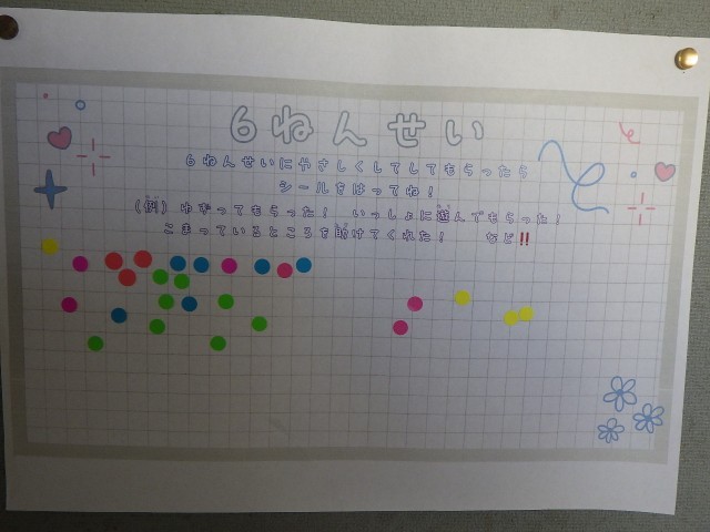 卒業プロジェクト「学校にできること」が進んでいます。先週と今週は「優しさを増やすこと」を目標にしたチームがプロジェクトを実施しています。その名も「優しさポイント増やしましょうプロジェクト」です。各クラスにポイントカードとシールを配布し、友達から優しくされたらシールを貼ります。普段、何気なくしたり、されてたりしている優しい行動を目で見える形=シールにすることで、全校の優しさをアップしようという取り組みです。どのクラスのポイントカードを見ても、毎日シールが増えて、見ているだけて温かな気持ちになります。昨日はプロジェクトの中間報告ということで、集めたシールの合計が書かれた賞状も配られました。三宅小学校がもっともっと優しさあふれる学校になるとすてきですね。
