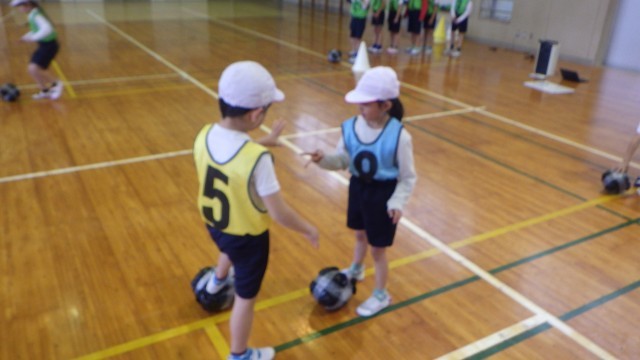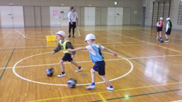 初めての活動とは思えないほど、力加減を上手に調節しながら、足でボールを操作していました。