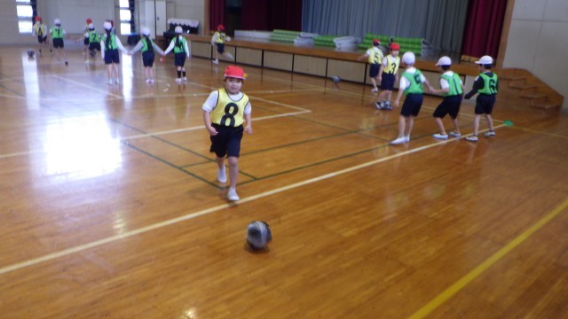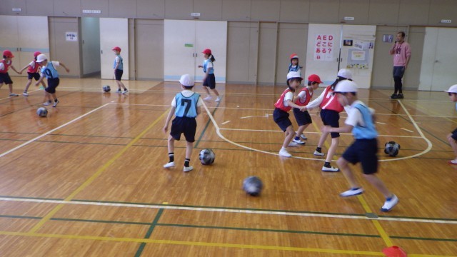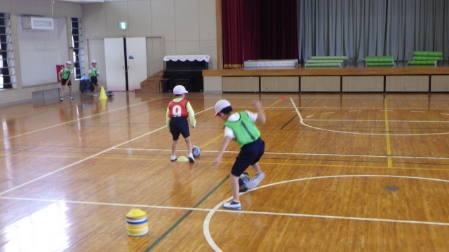 ドリブルしながら曲がるのは難しかったようですが、楽しみながら取り組むことができました。