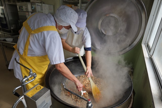 副菜の野菜のおかか和えは、鰹節の旨味が良く感じられる一品でした。給食では、汁物や和え物に「うま味成分」を含む食材を使用することで、塩分を控えても満足感のある味わいになるよう、工夫して調理をしています。普段の食事でも、うま味成分を取り入れながら無理なく減塩を進めていきたいです。