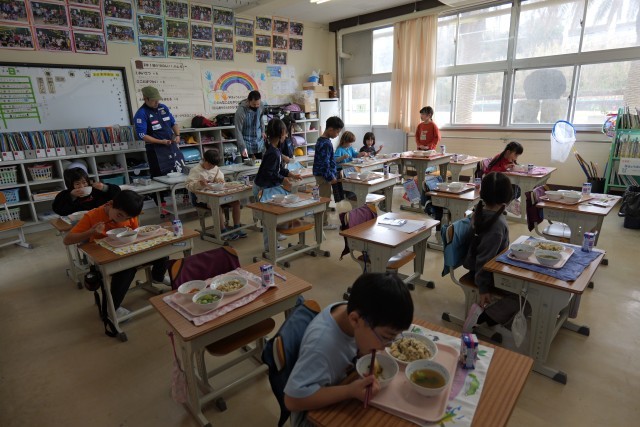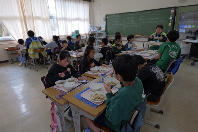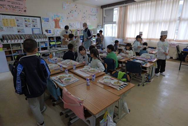 今日の主食の磯おこわは、もち米の食感がクセになるメニューで、多くの児童から好評でした。もち米は、冷めても硬くなりにくく、モチモチ感が持続するため、給食に適している食材です。3月の卒業祝い献立に登場するお赤飯にも、もち米を使用します。