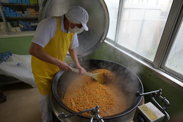 「キーマ」とは、ヒンディー語で「細かい」や「ひき肉」という意味があります。お肉のほかに細かく刻んだ野菜もたくさん入っており、美味しく栄養を摂ることができました。 子供たちは、ちぎったナンにカレーを上手にのせて、味わって食べていました。