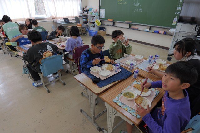 今日の給食時間は、大きなお口を開けて嬉しそうにジャンボ餃子を頬張る子供たちの笑顔が、たくさん見られました。美味しく調理してくださった調理員の皆さま、ありがとうございました。