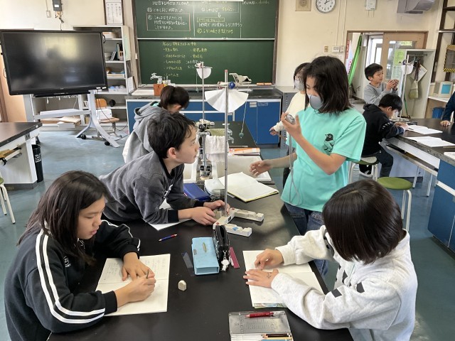 「ふりこの長さを調整すればよい」ことに気付き、チームで話し合いながら取り組む様子が見られました。