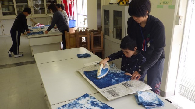 でき上がった作品は、慎重にアイロンをかけて丁寧にたたんでいました。