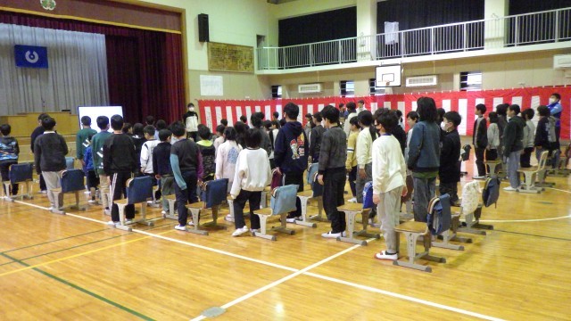 1~5年生による最初の卒業式練習を行いました。