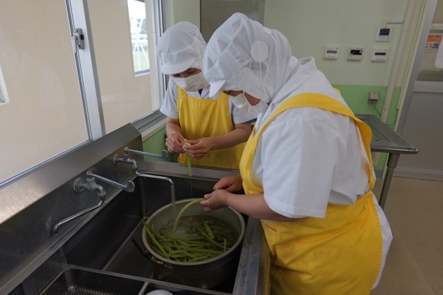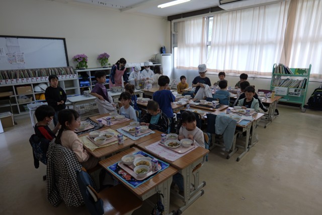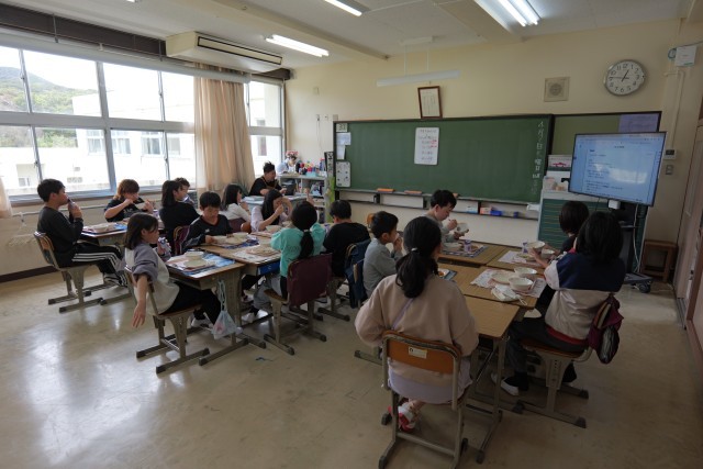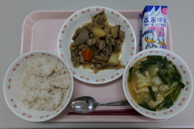 今日は1年生の給食開始日でした。「春野菜のうま煮」は野菜の美味しさがが感じられるメニューで、ご飯がよく進みました。うま煮に使用した「ふき」は愛知県知多市で栽培されたものを使用し、クセがあるものの、十分に下処理が行われていたため、食べやすい印象でした。素材の味を感じる給食でした。