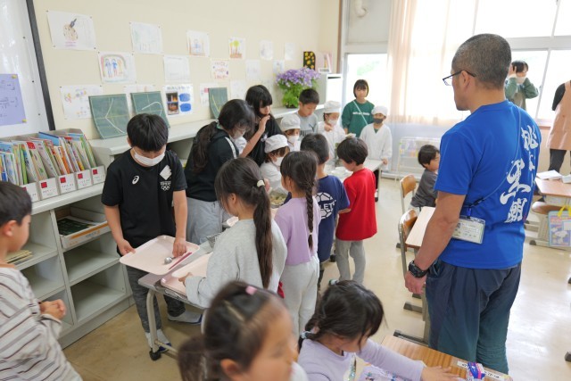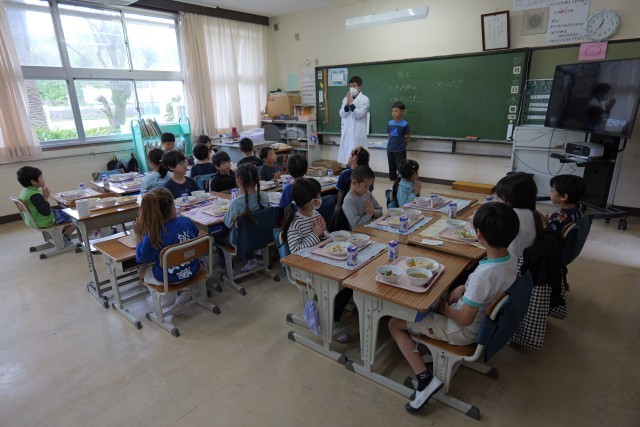 1年生は早くも配膳の流れを覚え、一人一人が積極的に準備を行っていました。