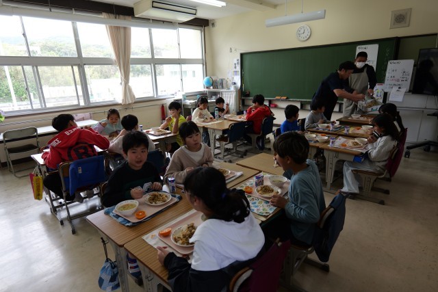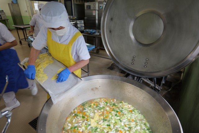 「ワンタンスープ」にも数多くの野菜を使用し、食べ応えのあるメニューとなっていました。中でもワンタンが子供たちに大人気でした。たくさんワンタンを包んでくださった調理員の皆さん、ありがとうございました。