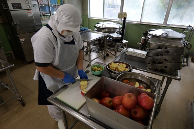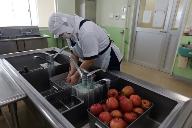 「りんご」は青森県産の「サンふじ」を使用しました。サンふじは国産生産量トップの品種で、甘みと酸味のバランスが良いのが特徴です。シャキシャキとした食感とみずみずしさが好評でした。