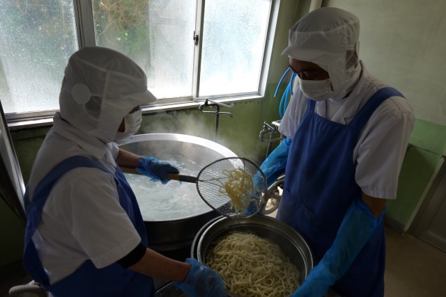 今日の「「山菜うどん」は、赤みず、わらび、なめこ、ふき、ぜんまい、たけのこを使用した、春の味覚を味わうメニューでした。山菜といえば、独特のほろ苦さや香りが特徴ですが、今回使用した山菜は、レトルト加工されたものであったため、非常に食べやすく子供たちからも好評でした。出汁の旨味が強く感じられる一杯で、うどんとの相性も抜群でした。