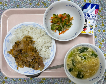 豚キムチ丼は、いつもよりやや辛めの味付けになりましたが、1年生もおいしく食べてくれました♪