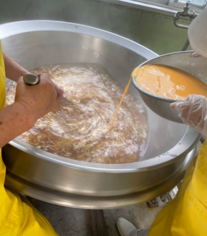 かきたま汁は、少しずつ、しっかりかき混ぜながら入れることでふわふわの仕上がりになります。でんぷんでとろみをつけることで、冷めにくく、飲みやすい汁になりました。