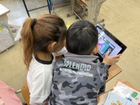1時間目は算数の時間です。問題を読んで、たしざんやひきざんの式にあらわすために考えました。