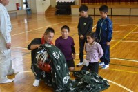 三枚目、各地区の伝統芸能を調べ、調べたことを発表している姿です。