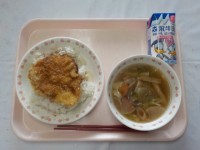 12月12日 献立タレカツ丼のっぺい汁牛乳 明日は、いよいよ持久走大会が行われ...