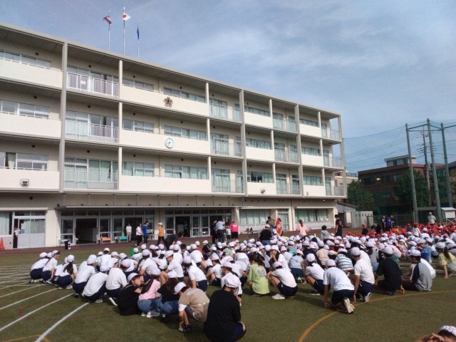 少し汗ばむような気候ではありましたが、全校児童が校庭に集まり、