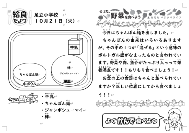 10月21日(火)の給食