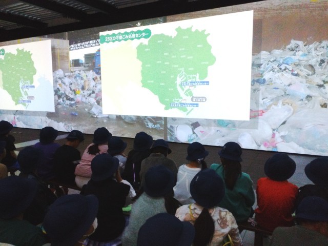 中央防波堤埋立処分場で、ゴミ処理の過程や3Rなどについて映像を見て学習しました。