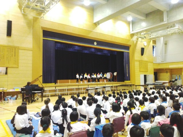 1205音楽会(児童鑑賞)その1 公開日 2025/12/05 更新日 2025/12/05 校長室 いよいよ音楽会が始まりました。今日は、児童鑑賞日は自分たちの発表はもちろんのこと、他の学年の合唱や合奏を鑑賞する機会でもあります。スローガンである「学校全体に響く、美しい音色を奏でよう。」に向けて発表します。1年生の「はじめの言葉」も上手にできていました。 +1