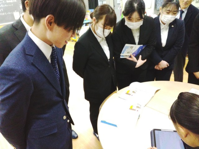 1217大学生の学校訪問 公開日 2025/12/17 更新日 2025/12/17 校長室 本日、東京聖栄大学の学生が本校に来ました。将来栄養教諭や栄養士になるために勉強されている方です。本校栄養士から栄養士の職務や足立区や本校の給食について説明をしました。来年4月から栄養士として学校で働く予定の方もいましたので、また会える日が来るかもしれませんね。