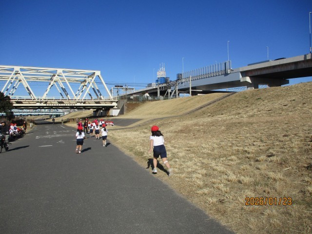1年生と2年生で、持久走記録会で実際に走るコースを試走してきました。
