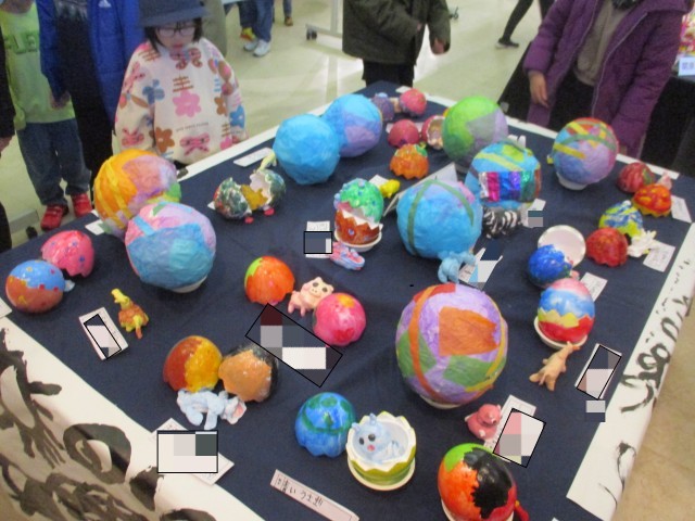 自分たちが作った作品が飾られ、嬉しそうに見学をしていました。