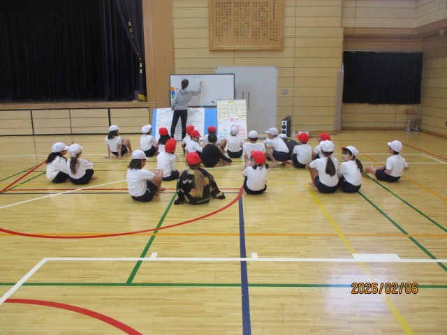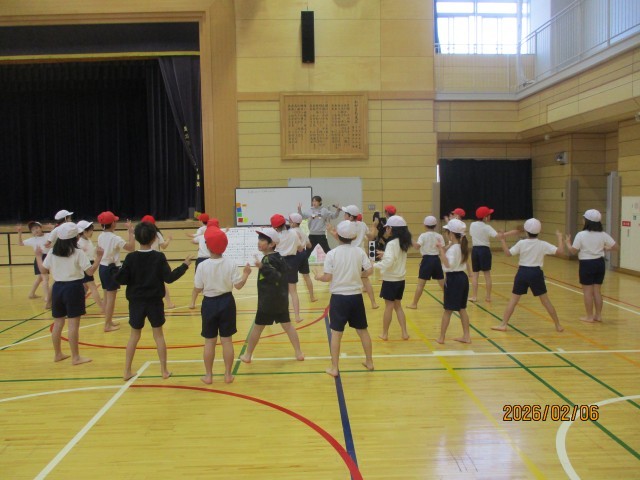 3年 体育「足立流忍者への道」 公開日 2026/02/09 更新日 2026/02/06 3年 3年の体育では「忍者の修行」をテーマに表現運動を行いました。○○の術をどんな動きで表現するかグループで考え、45秒程度の音楽に合わせて踊ります。授業をするたびに動きの種類が多くなったり、グループでの話し合いが上手になったり、と成長が見られました。とても楽しそうな表情で踊っているのが印象的でした。
