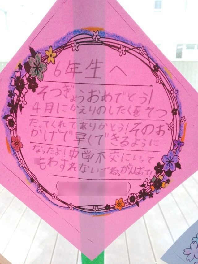 2枚目の写真は1年生の書いたメッセージです。