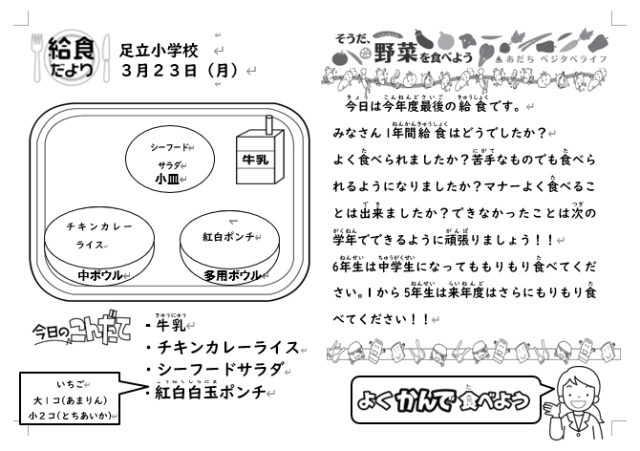 3月23日(月)の給食